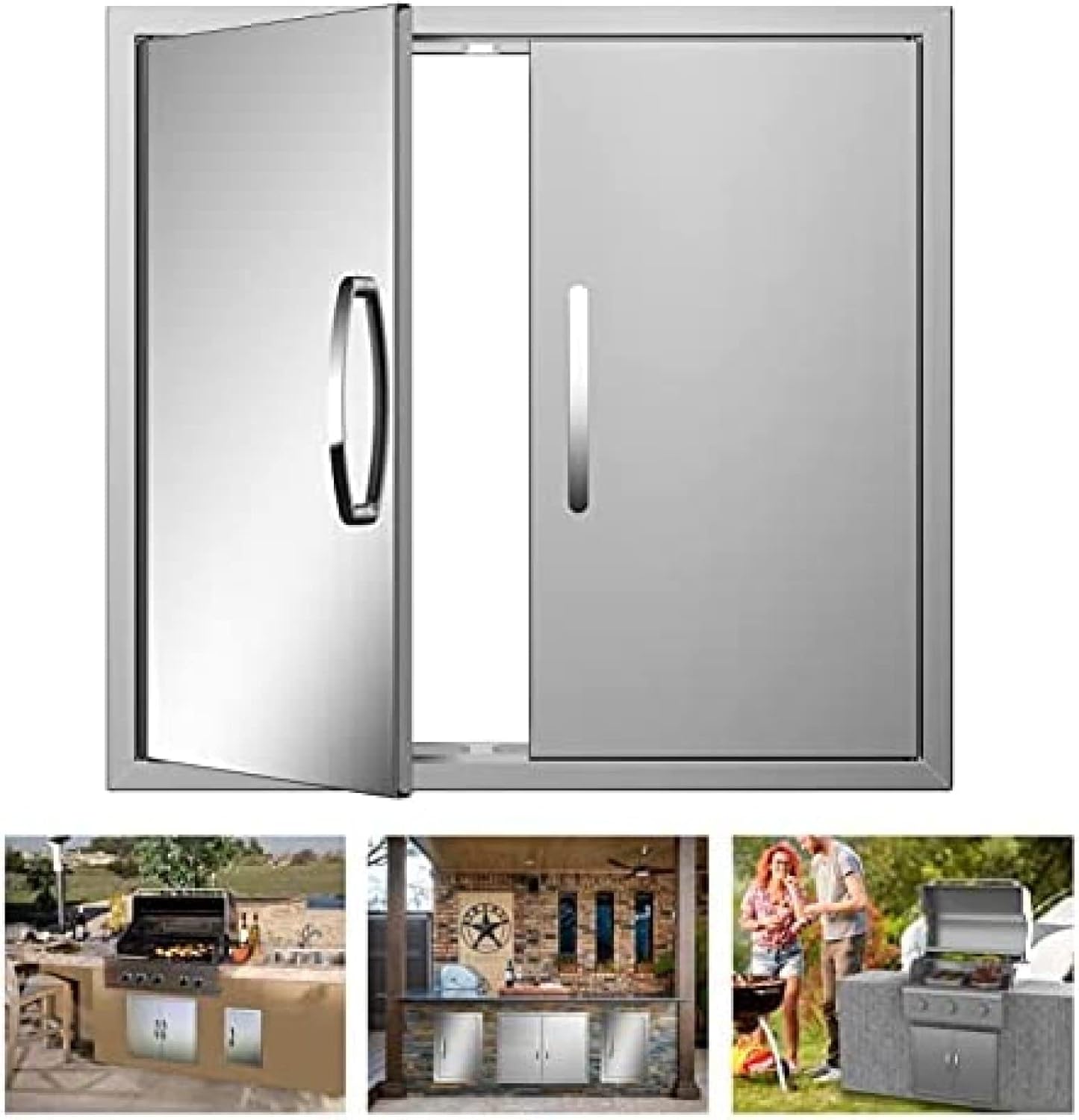 Suitable for the Indoor Kitchen304 Stainless Steel Kitchen Doors with VentsSuitable for the Outdoor Kitchen304 Stainless Steel Kitchen DoorsExquisite HandleHigh-quality aluminum alloy attached for easy opening. Allow quick and easy using experience. Allow pleasant cooking in your outdoor kitchen.Magnetic Closing SystemMagnet blocks on the top & bottom of the frame keep the cabinet in a tight, so no bugs or rodents can access your food or whatsoever in the cabinet.Pre-drilled HolesHook holes facilitate the installation of small hooks, which can be used to hang small items, such as rags, improving the space utilization.TIGHTENED DOOE HINGEThe Tighten the door is suitable for many times uses and also keep in good condition.Especially for outdoor kitchen and BBQ island.BBQ Doors Are Perfect for Outdoor Kitchen and BBQ Island and Great for Veneer, & Masonry Stone ApplicationsWhy Choose Us?1.Carefully designed: Modern minimalist style and Light Luxury2.New Upgrade:Better, Prettier and More Handy3.Craftsmanship Manufacture:Elaborate manufacturing, Attentive service, Reliable use to make customers satisfied.We heartily provide customers the best products in the cheapest price.