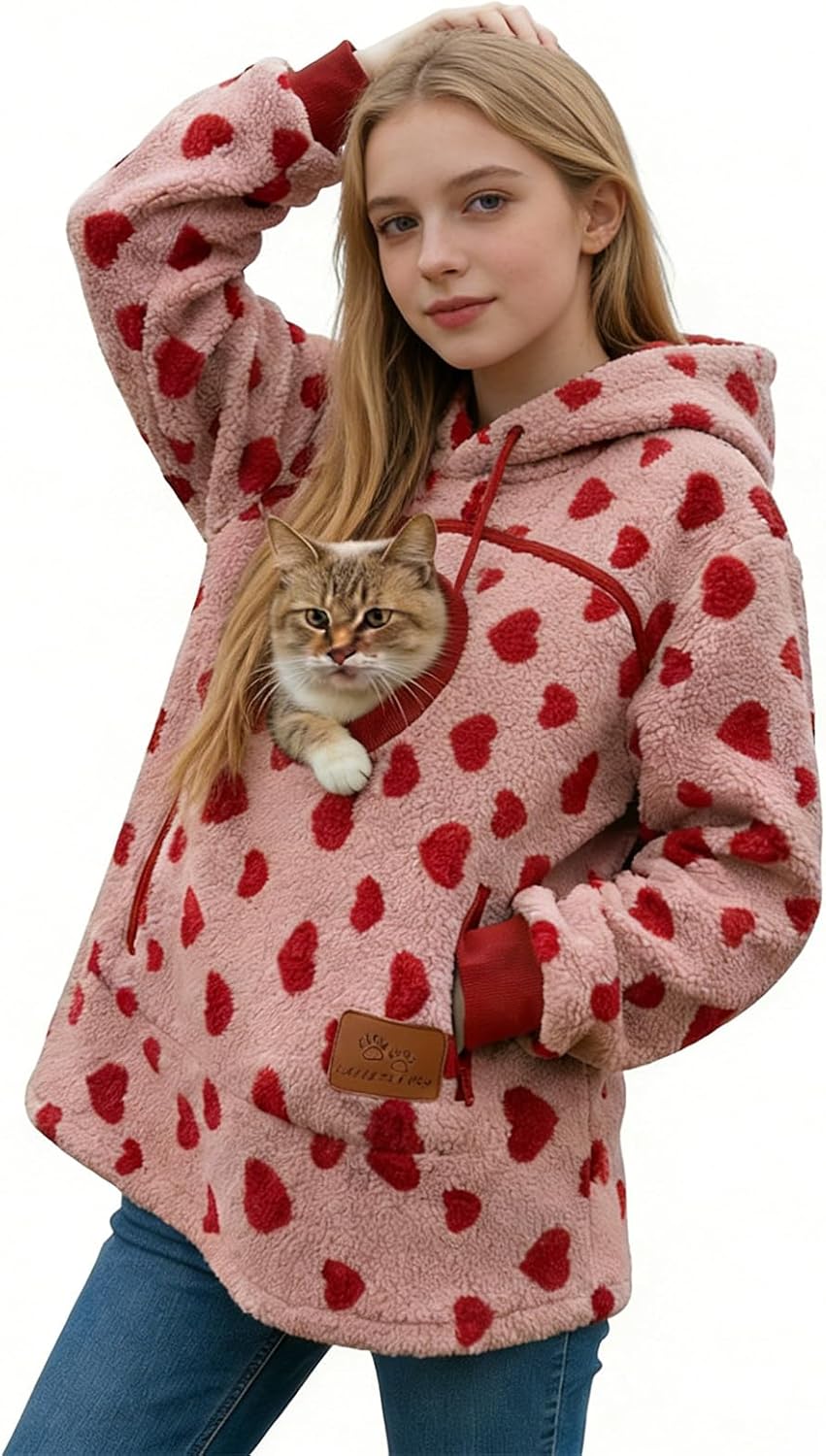 Cat Pouch Hoodie Pet Carrier Hoodie Zipper Kangaroo Pocket Sweatshirt With Pet Pouch Fleece Warm Pet Sweatshirt Outdoor