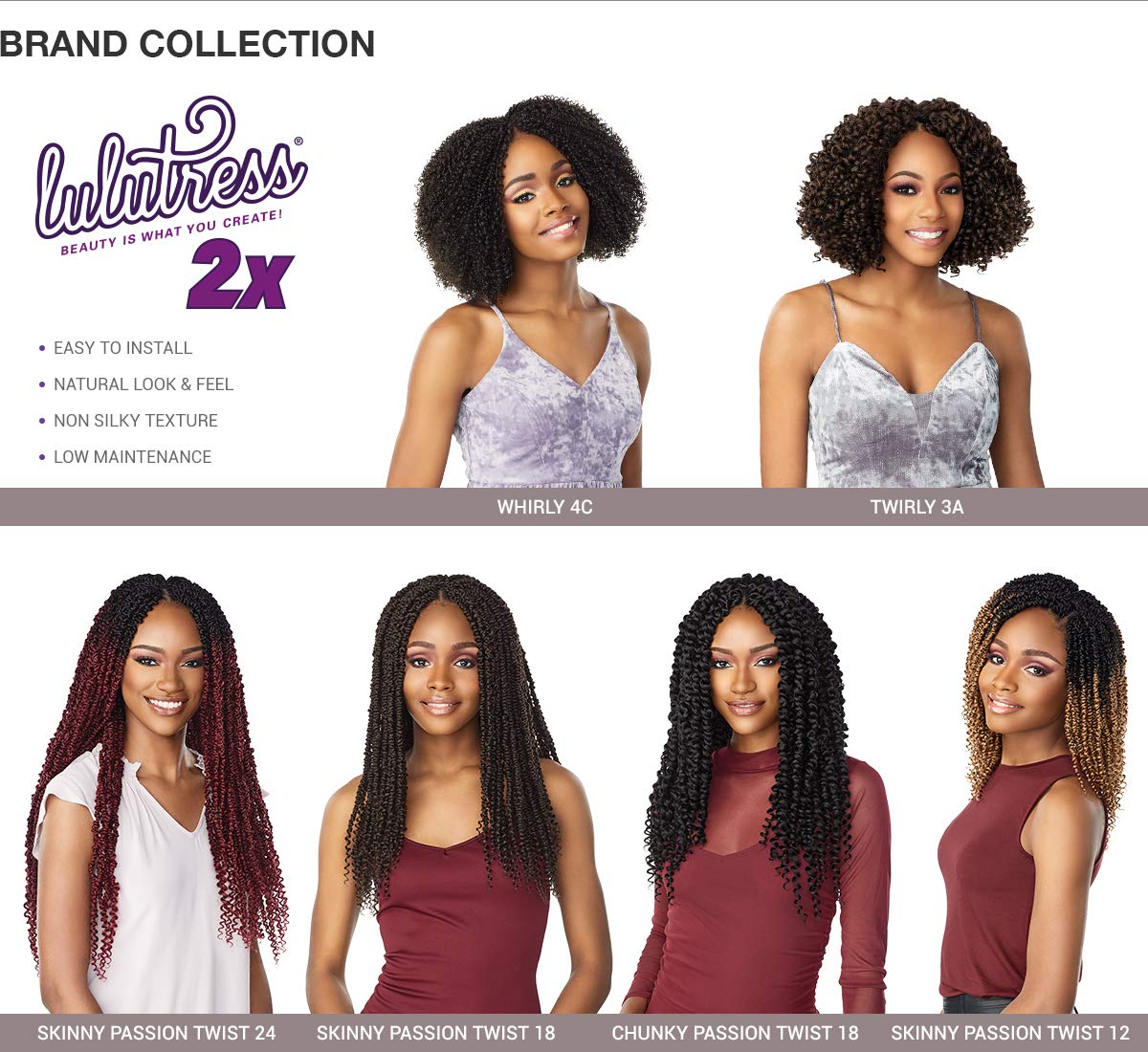 Sensationnel Crochet Braids Lulutress 2X Pre-Looped Chunky Passion Twist 18" - 16 Strands (2X) Easy to INSTALL! STEP 1: Open latch, and slide hook through cornrow. Loop the hair onto the hook. STEP 2: Close latch securely. Reverse and slide hooked hair back through the cornrow. STEP 3: Open latch, then remove hair from hook. Using two fingers, hold the pre-looped end of the hair open. STEP 4: Feed the hair through the pro-looped opening. Twist loop & feed again. Pull and secure tightly.